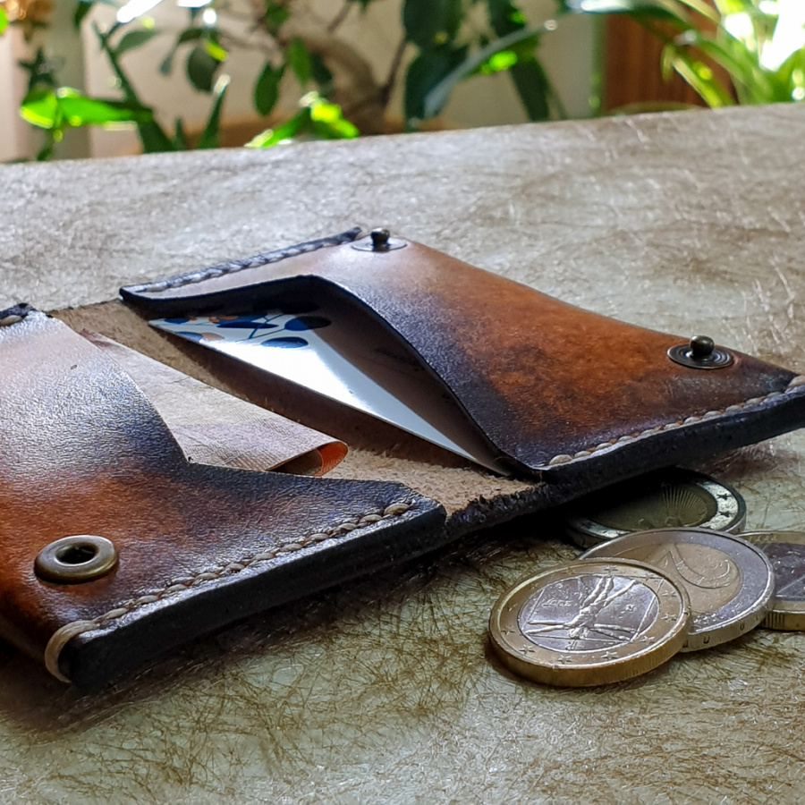 Moška usnjena denarnica je ročno izdelana v Sloveniji. Je ročno šivana in je iz pravega usnja. Če ste naveličani debelih denarnic, ki vas žulijo v žepih, potem je ta denarnica dobra rešitev za vas. Privoščite so sebi ali po jo uporabite kot priročno, kvalitetno in domiselno darilo.