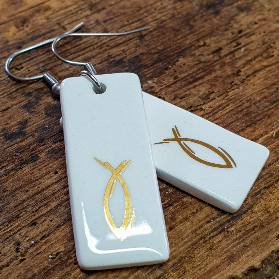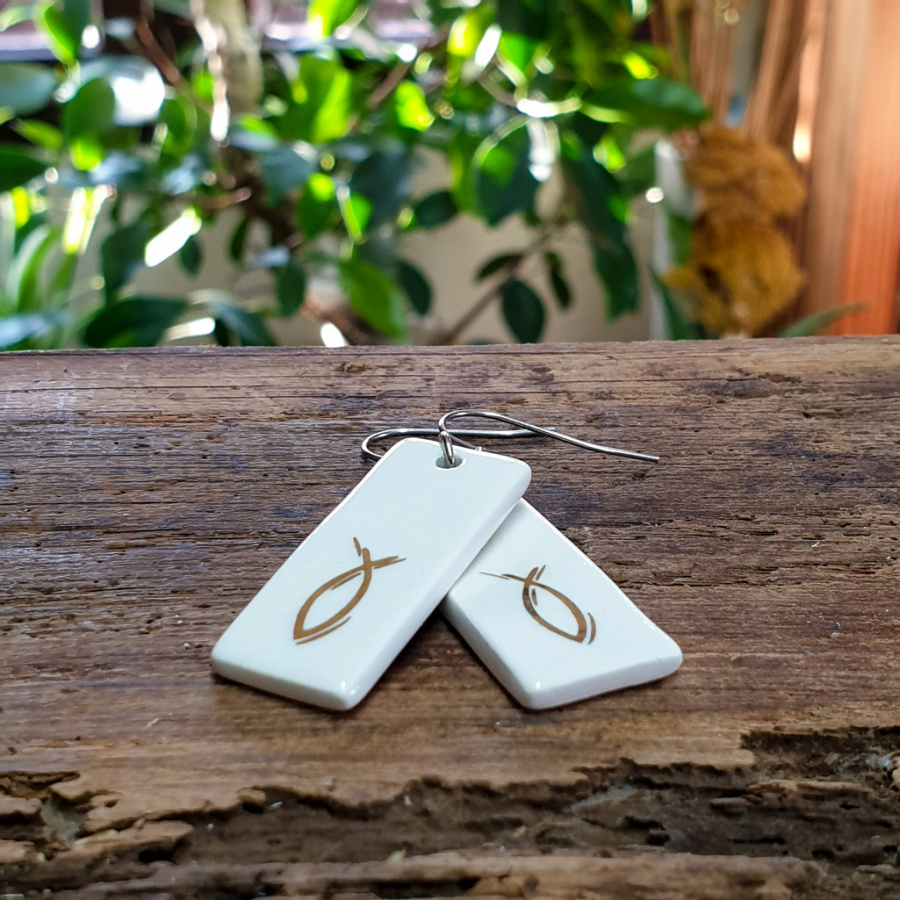 Uhani so ročno delo in so narejeni iz gline. So glazirani s prozorno glazuro. Dodatno pa je nanešen še okrasni detajl iz 10 % zlata. Ostale komponente so iz nerjavečega jekla.