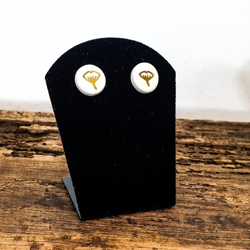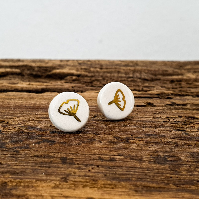 Uhani iz bele gline z dodatkom zlata - Ginko