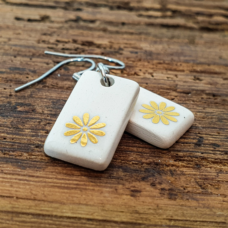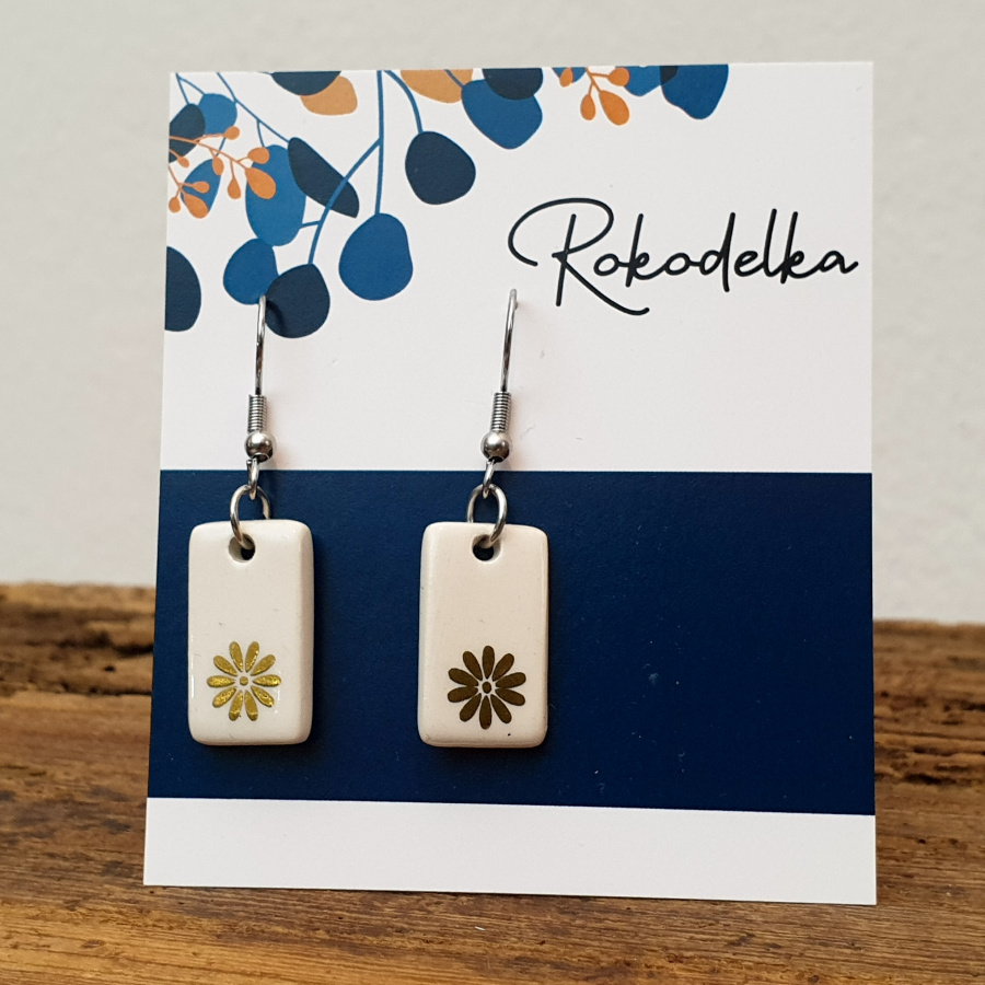 Viseči uhani iz bele gline z dodatkom zlata - roža